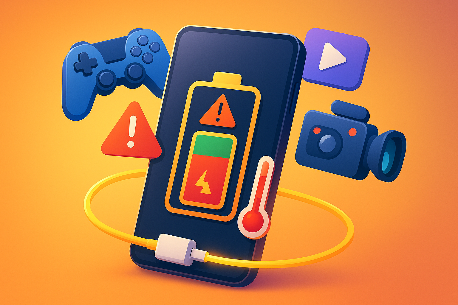 اشتباه رایج: اجرای بازی سه‌بعدی، استریم 4K یا فیلم‌برداری ممتد هم‌زمان با شارژ سریع.