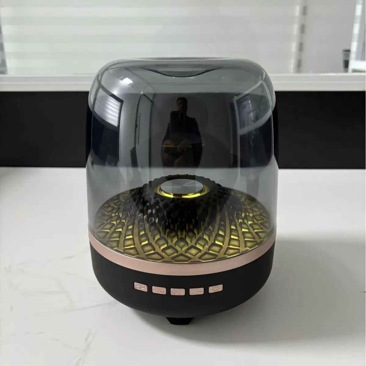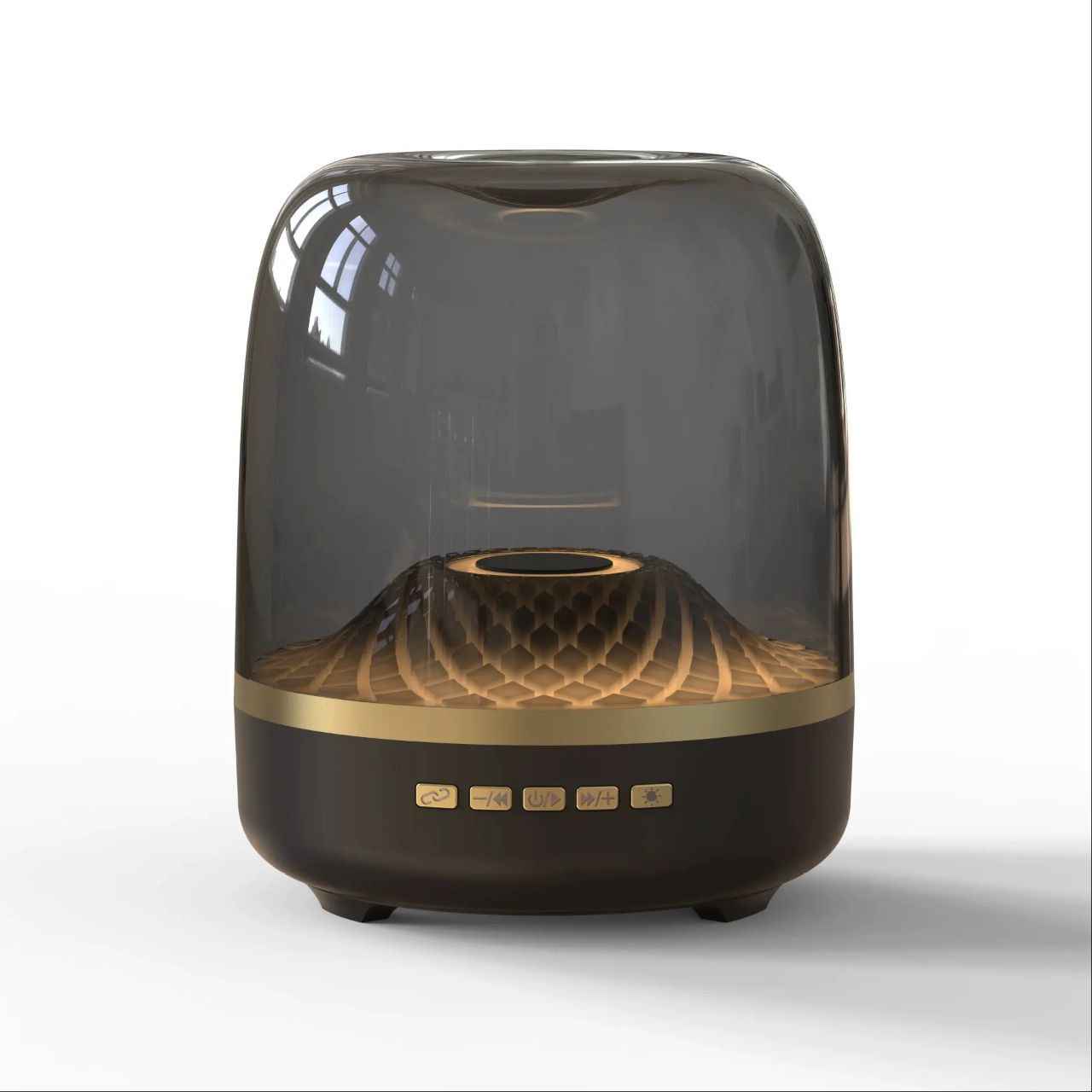 تصور کن شبها هنگام خواب یا در یک دورهمی دوستانه کوچک، این اسپیکر با نورهای ملایم و جذابش چه اتمسفر فوقالعادهای میسازد. طراحی داخلی آن شبیه به یک کوه یا الماس تراشخورده است که نور را میشکند و بازتاب زیبایی ایجاد میکند. بدنه مشکی مات در قسمت پایین با نوار طلاییرنگ، ظاهری لوکس به آن بخشیده است. تو با داشتن این اسپیکر، همزمان صاحب یک چراغ خواب موزیکال و یک پخشکننده قوی میشوی.