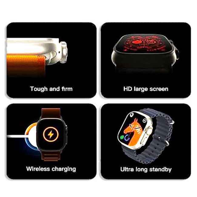 اولین چیزی که در برخورد با این ساعت توجه تو را جلب میکند، کیفیت ساخت بالای آن است. سازندگان ساعت هوشمند HM21 Ultra2 بدنه را از مواد درجه یک و مقاوم ساختهاند تا در برابر ضربه و خط و خش دوام بیاورد. عبارت “Tough and firm” که روی جعبه محصول میبینی، به همین استحکام اشاره دارد. تو میتوانی با خیال راحت در فعالیتهای روزمره و ورزشی از آن استفاده کنی. علاوه بر بدنه، یک صفحه نمایش بزرگ با کیفیت HD (HD Large Screen) انتظار تو را میکشد. این صفحه نمایش تصاویر را با شفافیت بالا و رنگهای زنده به تو نشان میدهد و کار کردن با منوها را برایت لذتبخش میکند.
